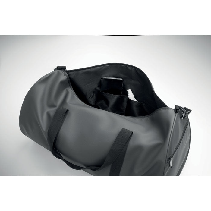 Bolsa de viaje fabricada en resistente poliéster RPET 600D con revestimiento de PU, ideal para un uso duradero y sostenible. Cuenta con bolsillo frontal con cremallera, forro interior en poliéster RPET 210D, un compartimento lateral con cremallera y otro de malla, además de bolsillo interior con cremallera para mejor organización. Su diseño práctico y moderno la convierte en una excelente opción para viajes, eventos deportivos y promociones de empresas comprometidas con el medio ambiente. Un regalo corporativo funcional, espacioso y con gran visibilidad para tu marca.