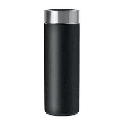 Termo de acero inoxidable de doble capa con carcasa y tapa de bambú e infusor de té. Capacidad: 400 ml. Como el bambú es un material natural, el color por artículo puede variar. FSC®-certified | FSC 100%, N5.7, FSC-C213206