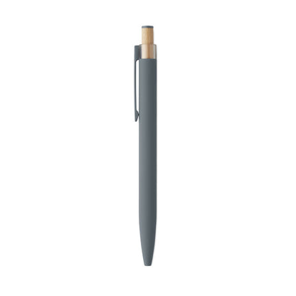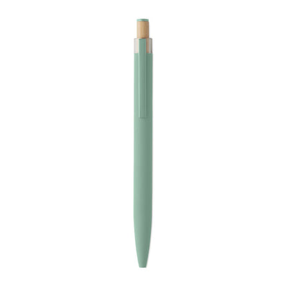 Bolígrafo de aluminio reciclado con detalles a juego, pulsador de bambú natural y clip metálico. Escribe con tinta azul suave y fluida. Su diseño moderno y ecológico lo convierte en una opción ideal para campañas de concienciación, oficinas sostenibles o ferias promocionales. Compacto, resistente y con personalidad, transmite compromiso con el medio ambiente sin renunciar al estilo. Personalízalo con tu logotipo y haz que tu marca esté presente en el día a día con un detalle útil y responsable.
