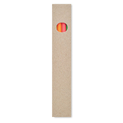 Juego de 4 lápices de colores resaltadores en caja de papel reciclado.