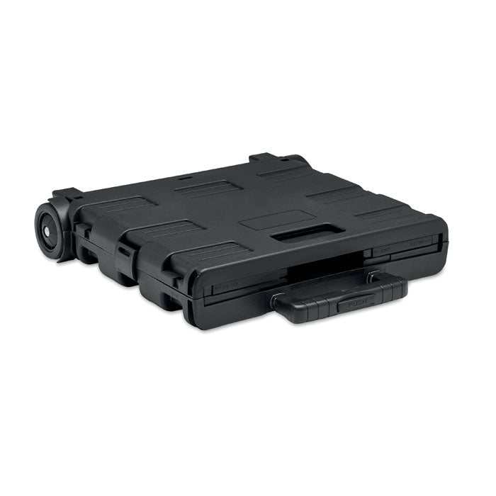 Carro de la compra plegable fabricado en polipropileno con asa de acero resistente. Capacidad de 32 litros y carga máxima de 25 kg, ideal para facilitar el transporte de compras y objetos pesados. Mide 38 x 36 x 3,3 cm cuando está plegado, lo que permite guardarlo fácilmente en espacios reducidos. Perfecto para supermercados, ferias o regalos promocionales prácticos. Personalízalo con tu logotipo y acompaña a tus clientes en sus compras diarias con estilo y funcionalidad.