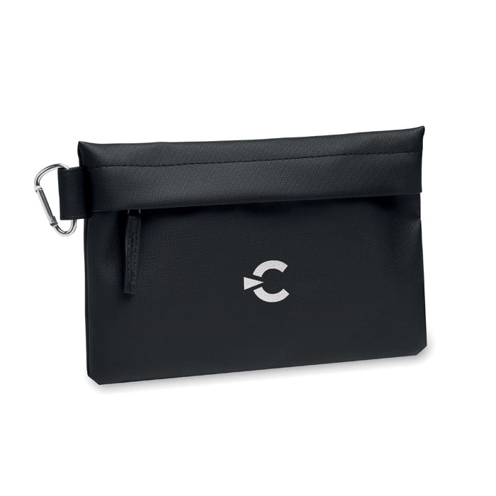 Bolsa organizadora fabricada en poliéster RPET 600D recubierto de PU, un material resistente y sostenible que proviene de botellas recicladas. Dispone de cierre de cremallera para mantener el contenido seguro y protegido. Su diseño compacto la hace perfecta para guardar accesorios, material de oficina, herramientas pequeñas o artículos de viaje. Ideal como regalo promocional para empresas que buscan merchandising ecológico y funcional. Encaja en categorías como ferias y congresos, equipación laboral o productos de viaje, ofreciendo visibilidad de marca y compromiso medioambiental.