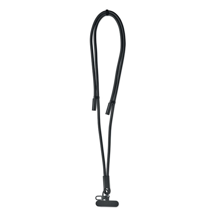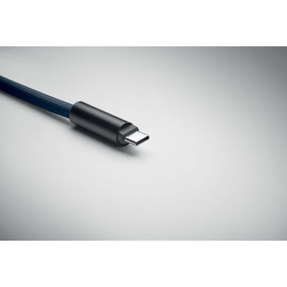 Cordón multifuncional fabricado en RPET que integra un cable de carga y transferencia de datos de 60W con conexión de tipo C a tipo C. Incluye soporte para sujetar el cable del teléfono y un práctico clip para llaves, ofreciendo comodidad y utilidad en un solo accesorio. Su diseño lo convierte en un regalo promocional innovador para empresas tecnológicas, ferias o eventos corporativos. Además, su fabricación en material reciclado lo posiciona como una opción sostenible dentro de campañas de merchandising ecológico.