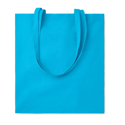 Bolsa de algodón de 140 gr/m² en varios colores con asas largas, ideal para compras y eventos promocionales. Su tejido ligero pero resistente garantiza comodidad y durabilidad, perfecta para empresas que buscan un regalo práctico y sostenible para sus clientes o empleados. Excelente para reforzar la imagen ecológica de tu marca.