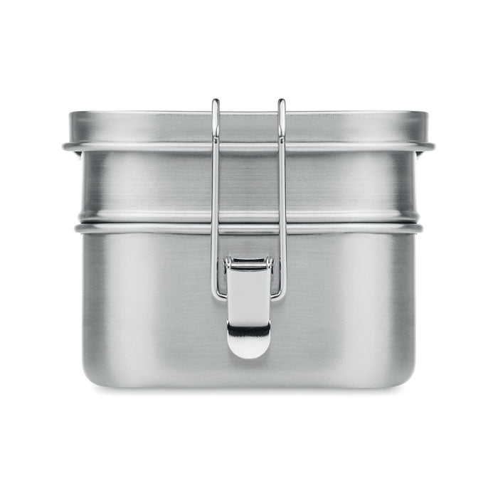 Aquí tienes la descripción SEO optimizada (85 palabras): Fiambrera de acero inoxidable con dos compartimentos y capacidad de 1200 ml, perfecta para llevar comidas completas sin mezclar. Sus fuertes hebillas laterales aseguran un cierre hermético, evitando fugas durante el transporte. Su diseño compacto de 16 × 11,5 × 8 cm la hace ideal para el día a día en oficina, escuela o actividades al aire libre. Resistente, reutilizable y fácil de limpiar. Personalízala con tu logotipo y utilízala como regalo promocional práctico y sostenible para tus clientes o empleados.