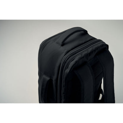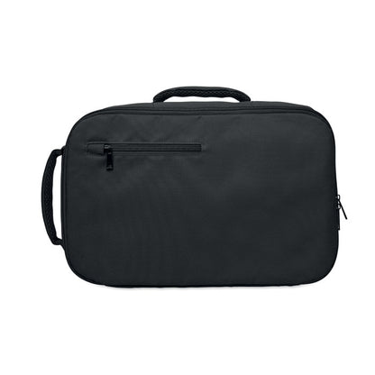 Mochila de mano tamaño cabina fabricada en poliéster RPET 600D, resistente y sostenible. Su apertura total de 180º facilita el acceso y la organización del contenido. Incluye compartimento principal con dos secciones abiertas, división interior de malla y bolsillo acolchado para portátil de hasta 15''. Incorpora correa trasera para trolley, perfecta para viajes de trabajo, ferias o desplazamientos frecuentes. Una opción práctica y actual dentro del merchandising corporativo y los regalos promocionales orientados a empresas, eventos y acciones de marca responsables.