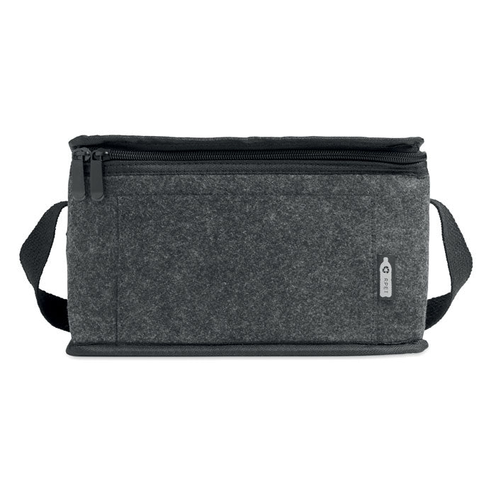 Bolsa nevera sostenible fabricada en fieltro RPET de 1 mm con capa aislante de aluminio laminado de 3 mm, que mantiene la temperatura hasta 5 litros. Incluye práctico bolsillo frontal para organizar pequeños objetos. Compacta y ligera, combina funcionalidad y respeto ambiental, ideal para promociones corporativas que buscan un regalo útil y ecofriendly. Perfecta para empresas que apuestan por merchandising con compromiso y estilo.