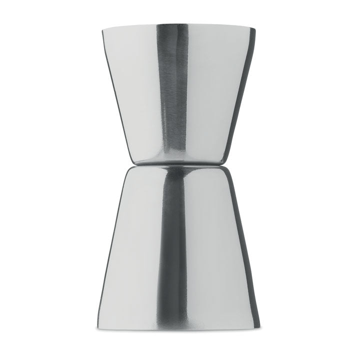 Vaso medidor para cócteles fabricado en acero inoxidable con doble capacidad: 25 ml por un extremo y 40 ml por el otro. Su tamaño compacto, de 4 cm de ancho y 8 cm de alto, lo convierte en un accesorio esencial para coctelería profesional o eventos promocionales. Ideal para bares, hoteles o marcas de bebidas que quieran ofrecer un regalo práctico y personalizable con su logotipo.