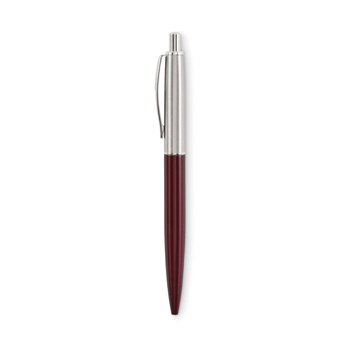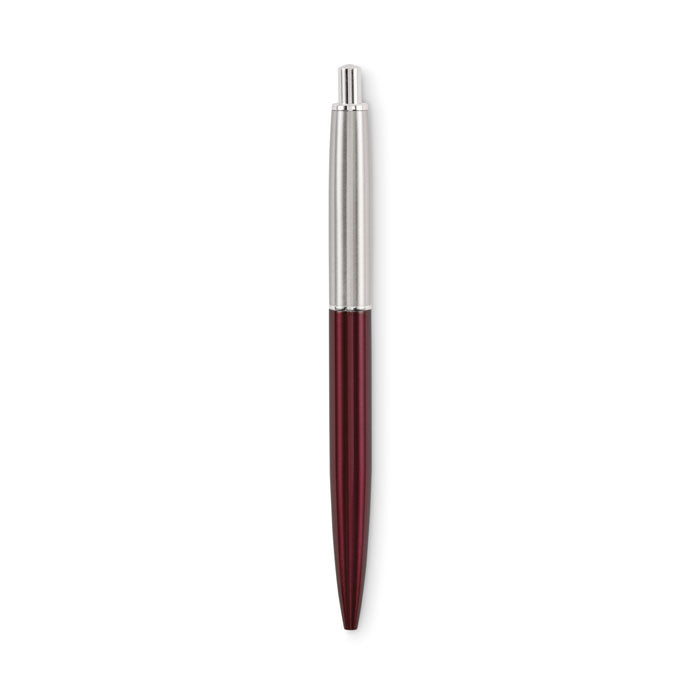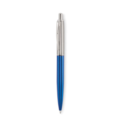 Bolígrafo con pulsador fabricado en acero inoxidable reciclado, una opción sostenible y moderna para la escritura diaria. Incluye tinta azul de gran fluidez y se presenta en un estuche elegante que realza su valor como obsequio. Su diseño combina practicidad y compromiso ambiental, siendo perfecto para oficinas, ferias y congresos. Puede personalizarse con el logotipo o nombre de tu empresa, convirtiéndose en un regalo promocional distinguido y funcional que reforzará tu marca en cada detalle.
