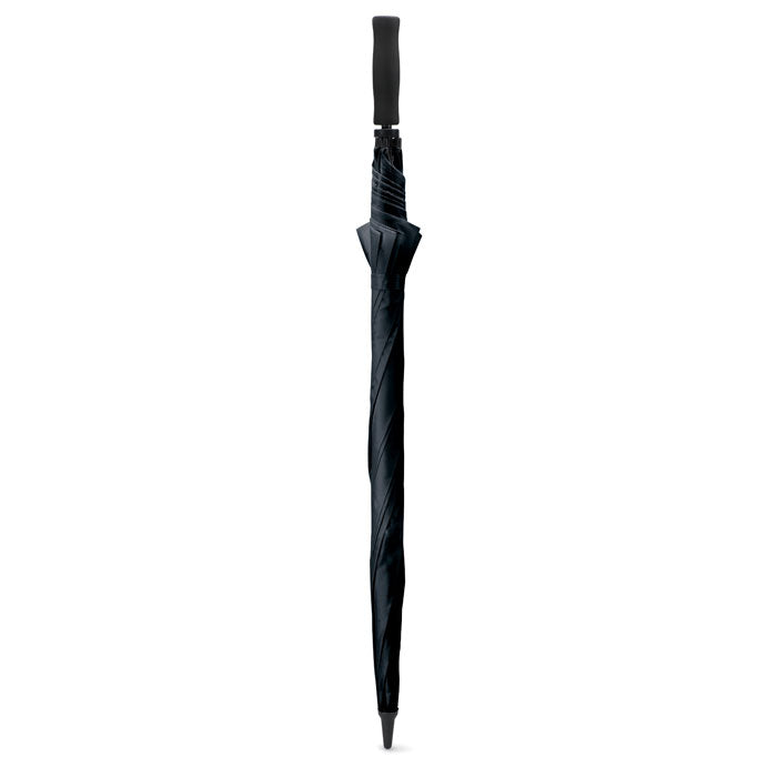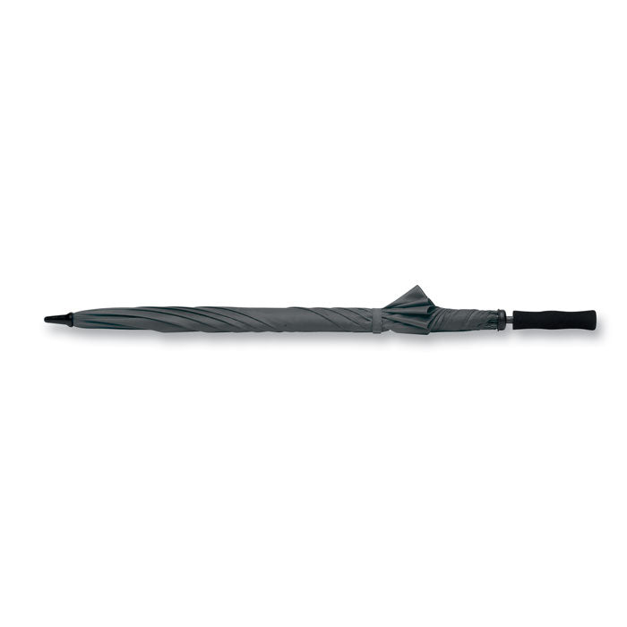 Paraguas de golf de 30″ con apertura manual y sistema antiviento, diseñado para una protección amplia y resistente. Fabricado en poliéster 190T con eje y costillas de fibra de vidrio, puntas de plástico y cierre manual. Su mango recto de EVA negro proporciona un agarre cómodo y seguro, incluso en condiciones húmedas. Con dimensiones de 128 cm de ancho y 97 cm de alto, es ideal para eventos deportivos o como regalo promocional premium. Personalízalo con tu logotipo y convierte cada jornada de lluvia en una oportunidad de visibilidad.