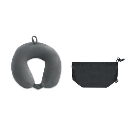 Almohada de viaje ergonómica de espuma con elastano que ofrece soporte cómodo durante trayectos largos. Viene con bolsa de poliéster 210D RPET con cordón, fácil de transportar y reutilizable. Compacta y ligera, es ideal para viajeros frecuentes y un regalo promocional práctico que cuida del bienestar. Perfecta para campañas corporativas que buscan combinar funcionalidad con sostenibilidad en productos de calidad.
