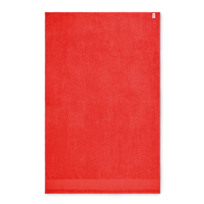 Toalla de baño de rizo fabricada en algodón 100 %, con un gramaje de 380 g/m² que ofrece una buena capacidad de absorción y tacto suave. Incorpora lazo de algodón para colgar y un tamaño amplio de 100 x 150 cm, adecuado para uso diario. Indicada para hoteles, gimnasios, spas, centros deportivos, alojamientos turísticos o acciones promocionales relacionadas con bienestar y cuidado personal. Una toalla resistente y confortable, pensada para un uso frecuente tanto en entornos profesionales como domésticos.