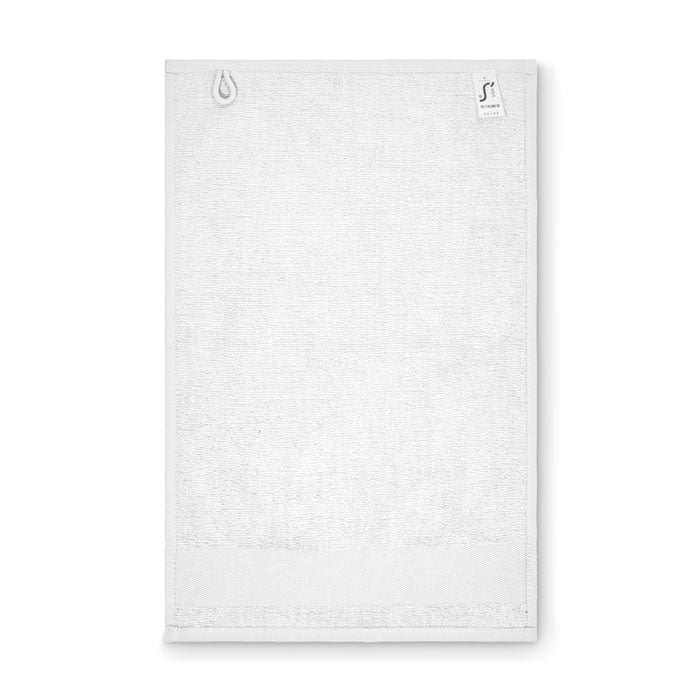 Toalla de rizo confeccionada en algodón 100 %, con un gramaje de 380 g/m² que garantiza buena absorción y tacto suave. Incorpora lazo de algodón para colgar y un formato compacto de 30 x 50 cm, ideal para uso de manos o lavabo. Adecuada para hoteles, gimnasios, spas, centros deportivos, clínicas o acciones promocionales relacionadas con higiene y bienestar. Una toalla resistente y práctica, pensada para uso frecuente tanto en entornos profesionales como en el día a día.