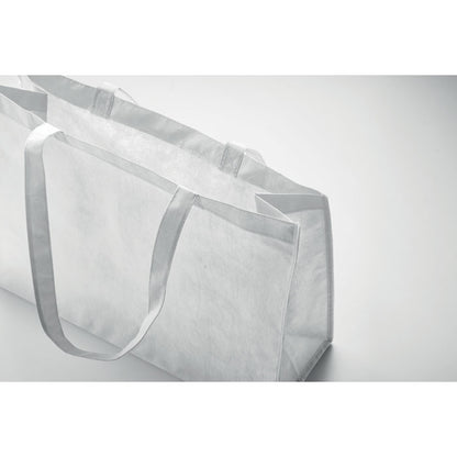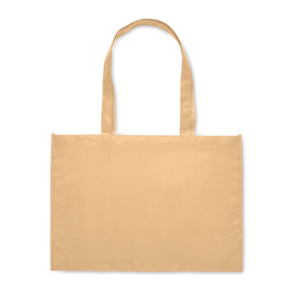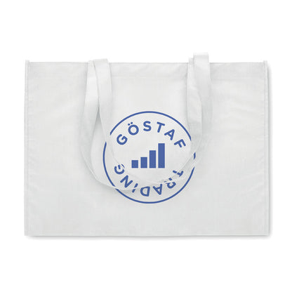 Bolsa de compra o playa fabricada en RPET no tejido de 80 g/m², con fuelles y asas largas para mayor capacidad y comodidad. Sus medidas de 45x16x32 cm la hacen práctica y resistente, ideal para un uso diario sostenible. Un regalo promocional ecológico que destaca por su durabilidad y compromiso ambiental, perfecto para marcas que quieren combinar funcionalidad y responsabilidad.