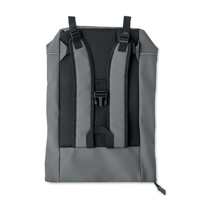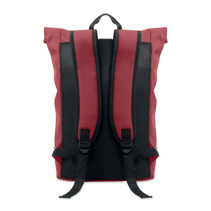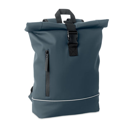Mochila rolltop para portátil de 15" fabricada en suave PU, con respaldo acolchado y base reforzada para mayor durabilidad. Incluye bolsillo frontal impermeable con cremallera y banda reflectante para mayor visibilidad. El interior está forrado en poliéster reciclado RPET 210D, aportando un toque sostenible. Su diseño moderno y funcional la convierte en una excelente opción para promociones corporativas. Ideal para personalizar con logotipo y destacar tu marca en entornos urbanos, eventos o campañas comprometidas con el medioambiente.