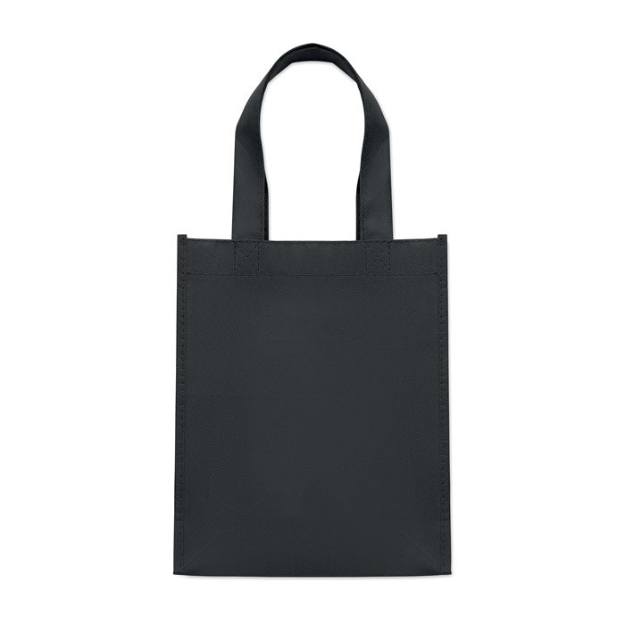 Bolsa pequeña para regalo fabricada en RPET no tejido de 80 g/m², con asas cortas y fuelle inferior. Compacta y reutilizable, ideal para presentar productos corporativos, obsequios en ferias o promociones sostenibles. Medidas funcionales y diseño sencillo para destacar tu marca con responsabilidad. Personalízala con tu logotipo y transforma un envoltorio en un soporte promocional reutilizable, ecológico y práctico.