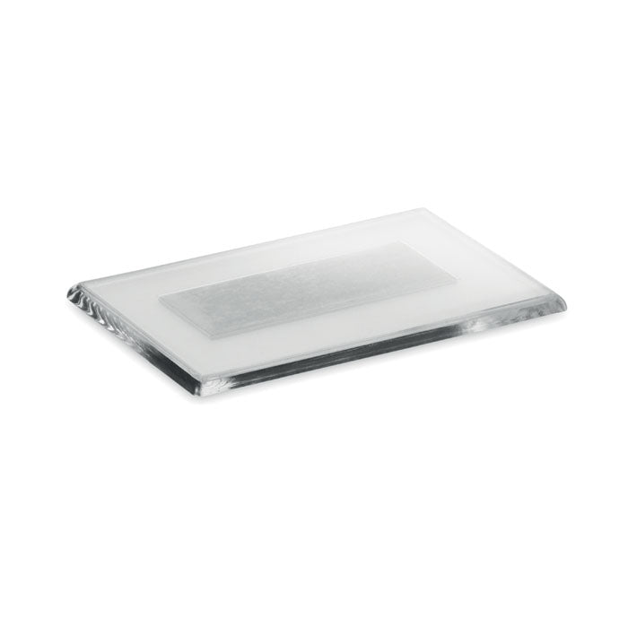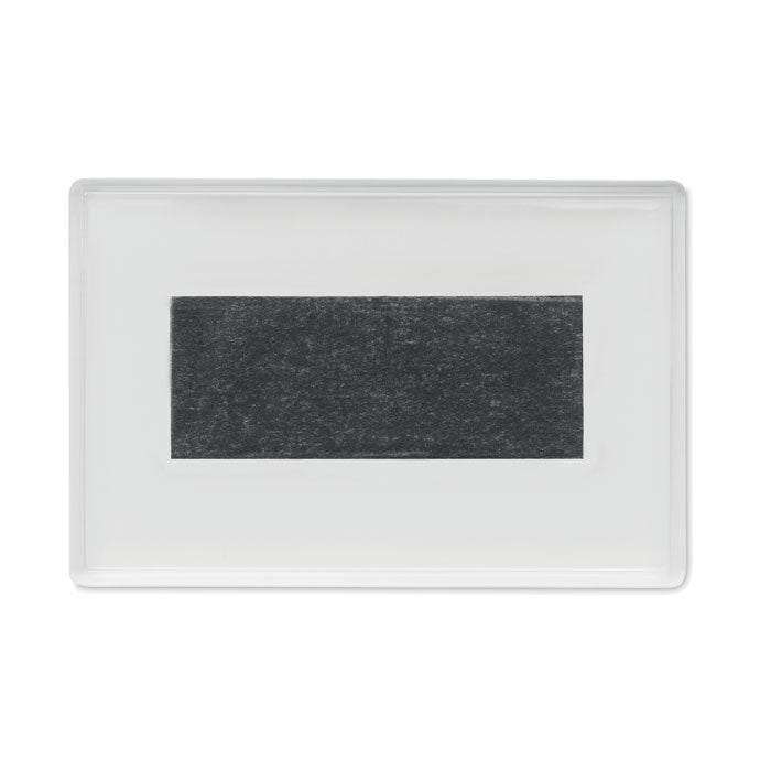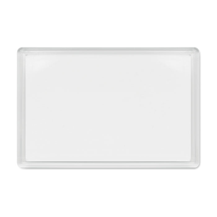 Portarretratos acrílico rectangular con sistema magnético, diseñado para mostrar imágenes de 8,8 × 5,6 cm de forma clara y estable. Su estructura transparente permite una presentación limpia y profesional, ideal para escritorios, espacios de trabajo o superficies metálicas. El cierre magnético facilita el cambio de imagen de manera rápida. Un artículo práctico para acciones promocionales, eventos corporativos o como detalle funcional en oficinas, ferias y campañas de comunicación visual.