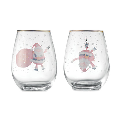 Set de 2 vasos de Navidad con borde dorado. Presentado en una caja de regalo. Capacidad: 330 ml.