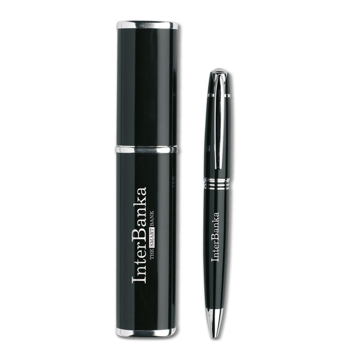Bolígrafo giratorio de metal con un diseño sobrio y elegante, presentado en una resistente caja de regalo de aluminio. Equipado con mina metálica y tinta negra, ofrece una escritura fluida y profesional. Con 14,5 cm de longitud, es perfecto para destacar en reuniones, firmas o eventos corporativos de alto nivel. Una opción premium para promociones con clase, ideal como regalo institucional o detalle de empresa con valor añadido. Calidad, presentación y estilo en un solo artículo.