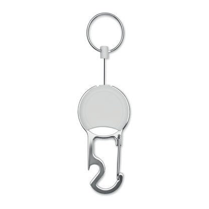 Portacredenciales retráctil fabricado en ABS, con clip trasero, llavero metálico y práctico abrebotellas integrado. Su diseño compacto (10 × 3,5 cm) permite llevar tarjetas identificativas siempre a mano, ideal para ferias, congresos o entornos laborales. El mecanismo retráctil facilita el acceso sin necesidad de desengancharlo. Un artículo multifunción, resistente y cómodo, que combina visibilidad de marca con utilidad en el día a día.