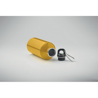 Botella de 500 ml con pared simple, fabricada en acero inoxidable reciclado (90 %) y equipada con mosquetón metálico para facilitar su transporte (no apto para escalada). Ligera, resistente y con sistema antifugas, es perfecta para campañas promocionales sostenibles, actividades deportivas o eventos al aire libre. Admite impresión por sublimación solo en el modelo blanco. Al tratarse de una sola pared, puede notarse cierta transferencia térmica. Un regalo promocional funcional y responsable con el medio ambiente. Personalízala con tu logotipo y haz que tu marca acompañe cada movimiento.