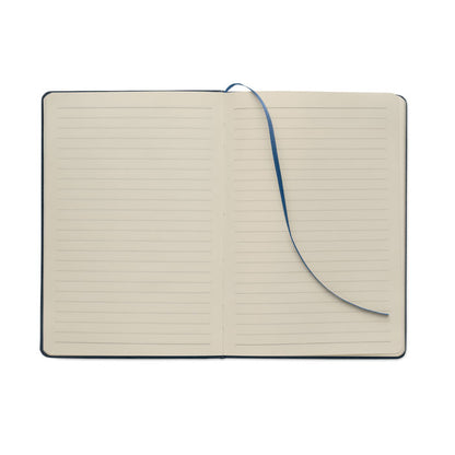 Libreta tamaño A5 con tapa dura fabricada en RPET, que incorpora un práctico soporte para teléfono integrado. Incluye bolígrafo 2 en 1 en ABS, con función normal y sin tinta para escritura eterna. Consta de 192 páginas rayadas (96 hojas) de papel reciclado de 70 g/m², además de correa y marcapáginas a juego. Un artículo sostenible y funcional, perfecto como regalo promocional para oficinas, ferias o congresos. También encaja en campañas de merchandising ecológico y material de oficina, reforzando la visibilidad de marca con un detalle innovador.