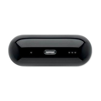 Auriculares estéreo inalámbricos True Wireless Stereo (TWS) 5.0 fabricados en ABS, con batería de 30 mAh cada uno y base de carga de 230 mAh. Incorporan micrófono, cancelación activa de ruido (ANC) y cancelación de ruido ambiental (ENC) para llamadas más claras. Disponen de pantalla táctil para un control sencillo y display de estado. Un accesorio moderno y funcional, ideal como regalo promocional tecnológico para ferias, congresos o empresas innovadoras. También encaja en campañas de merchandising premium, ofreciendo calidad de sonido y visibilidad de marca.