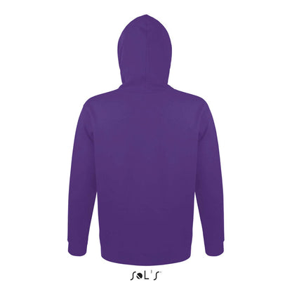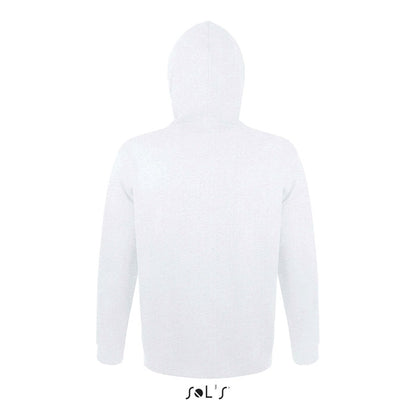 Sudadera unisex con capucha, estilo moderno y precio asequible. Fabricada en tejido cepillado de 280g/m² con mezcla de 50% algodón ringspun y 50% poliéster. Incluye bolsillos canguro, puños y dobladillo con elastano, capucha con cordón del mismo tono y sin etiqueta para facilitar la personalización. Ideal como sudadera promocional para eventos juveniles, merchandising o colectivos. Certificación Oeko-Tex®. Disponible solo con estampado.