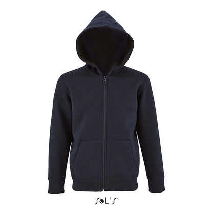 Sudadera para niños de 260g/m² fabricada en 50% algodón y 50% poliéster brushed fleece. Diseño con capucha, cremallera completa, bolsillos canguro y puños en canalé para un ajuste cómodo. Mangas remetidas y corte tubular que garantizan libertad de movimiento. Una prenda versátil para colegios, actividades al aire libre o como ropa promocional infantil personalizada para eventos o marcas.