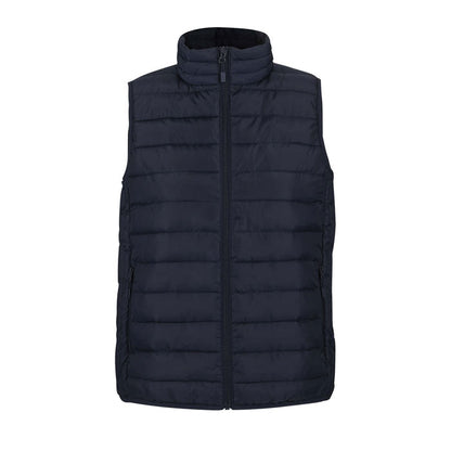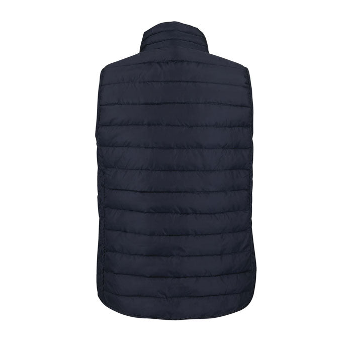 Chaleco femenino acolchado, fabricado en poliéster con interior de plumón sintético. Incluye cierre frontal y bolsillos laterales con cremallera de nailon, cuello alto y ribetes elásticos en sisas y bajo. Diseño cómodo y versátil, ideal para promociones, equipaciones corporativas o uso diario. Incluye bolsa para guardado compacto, perfecta para ferias, eventos de empresa o textil promocional.