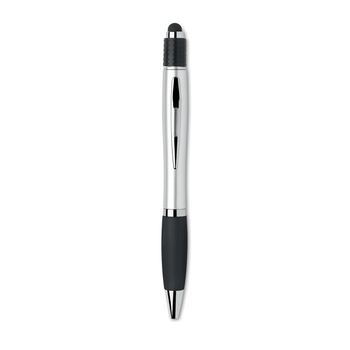 Bolígrafo Stylus fabricado en ABS reciclado con función giratoria antiestrés, ideal para liberar tensión mientras escribes o usas tu dispositivo. Incorpora puntero táctil y tinta azul para una escritura fluida y precisa. Con 14,6 cm de longitud y diseño ergonómico, es perfecto para oficinas, ferias o campañas promocionales con un enfoque creativo y sostenible. Un artículo original y funcional que aporta valor a tu marca con cada giro.