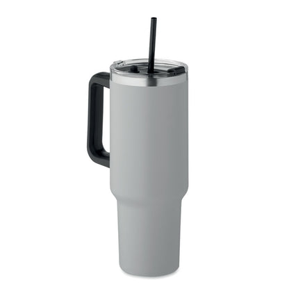 Vaso de doble pared fabricado en acero inoxidable reciclado (90%) y acero inoxidable (10%), con capacidad de 1200 ml. Cuenta con tapa segura y pajita de polietileno para un uso cómodo y práctico. Su diseño de doble pared mantiene la temperatura de tus bebidas por más tiempo, ideal para uso diario. Sus dimensiones de 14 cm de ancho y 25 cm de alto ofrecen un tamaño perfecto para llevar y disfrutar en cualquier ocasión. Personalízalo y haz que tu marca destaque con un regalo promocional útil y sostenible.