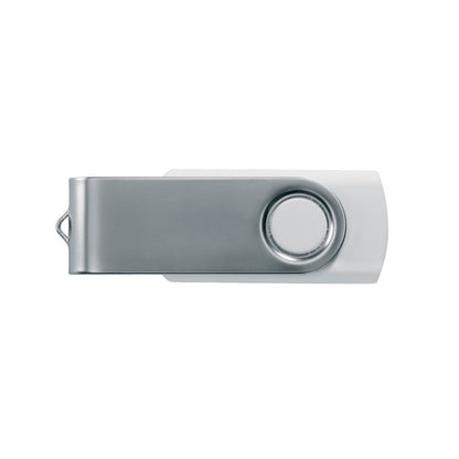 Memoria USB 2.0 de 4 GB con clip metálico giratorio que protege el conector y facilita su uso. Solo hay que girar el clip y conectarla al puerto USB para comenzar a transferir archivos. Compacta, ligera y funcional, con unas medidas de 5,5 × 1,9 × 1 cm. Perfecta para campañas promocionales, oficinas o eventos. Personalízala con tu logotipo y convierte esta memoria en un práctico soporte de marca para tus clientes.