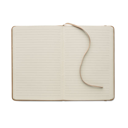 Cuaderno A5 con tapa dura de PU ahumado, fabricado con un 40 % de material reciclado y un 60 % de PU, que aporta un acabado elegante y sostenible. Encuadernado y con 160 páginas rayadas (80 hojas) de papel reciclado de 70 g/m². Incluye marcapáginas de cinta de poliéster a juego. Ideal para uso diario en oficinas, eventos corporativos o promociones con enfoque ecológico. Personalízalo con el logotipo de tu empresa y refuerza tu imagen de marca con estilo y compromiso ambiental.