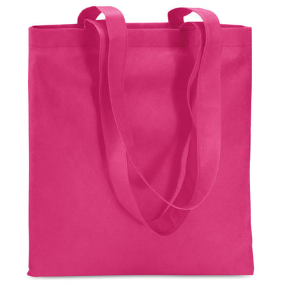 Bolsa de la compra fabricada en resistente material non woven de 80 g/m², ligera, reutilizable y fácil de plegar para llevar siempre contigo. Cuenta con asas largas para un transporte cómodo al hombro, ideal para compras diarias, ferias, congresos o eventos promocionales. Con unas dimensiones de 40 × 40 cm, ofrece espacio suficiente para transportar artículos de forma segura. Una opción económica y funcional que ayuda a reducir el uso de bolsas desechables. Perfecta para personalizar con el logotipo de tu empresa y reforzar tu imagen de marca de manera práctica y sostenible.