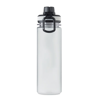Botella de 750 ml fabricada en RPET, material reciclado y ligero, perfecta para promociones sostenibles y campañas de concienciación ambiental. Cuenta con tapa de PP con cierre seguro y es ideal para agua u otras bebidas no gaseosas. Su diseño sencillo y funcional (24,5 × 7 cm) permite llevarla cómodamente en mochilas o bolsas, tanto en la oficina como en actividades al aire libre. Una opción responsable y práctica para empresas que apuestan por el merchandising ecológico. Personalízala con tu logotipo y haz que tu marca se asocie a hábitos saludables y sostenibles.