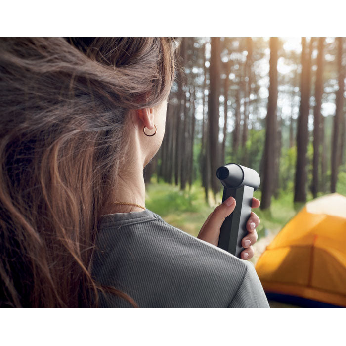 Turboventilador portátil recargable con batería integrada de 4000 mAh y potencia de viento de hasta 35 m/s. Incorpora 4 niveles de velocidad, alcanzando las 130.000 RPM, y cuenta con 3 luces LED que mejoran su usabilidad en diferentes entornos. Compacto y multifuncional, puede utilizarse como soplador, ventilador o limpiador de polvo. Un gadget innovador ideal como regalo promocional tecnológico en ferias, congresos o campañas corporativas. Su diseño versátil y potente lo convierte en un accesorio práctico que refuerza la visibilidad de marca.