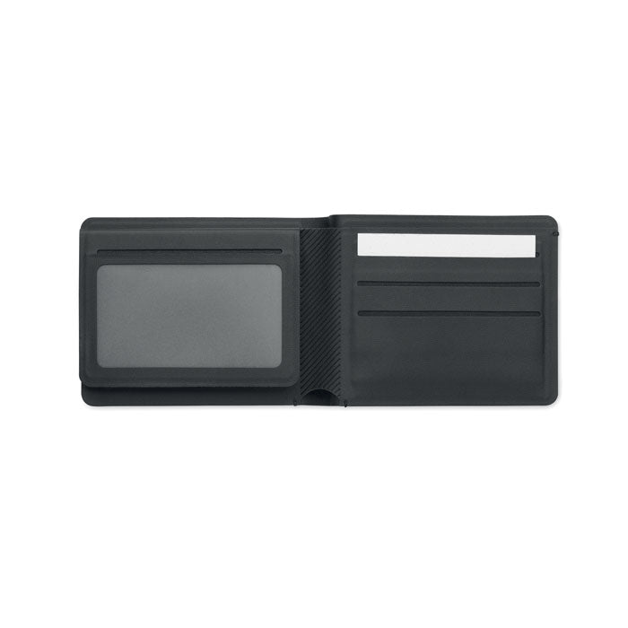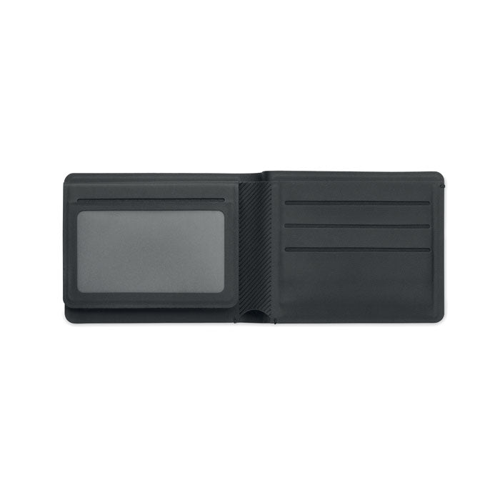 Cartera de PU con localizador inteligente integrado, recargable (100 mAh) y compatible exclusivamente con dispositivos Apple® (iOS) a través de la red Apple® Find My. Esta tecnología permite localizar la cartera de forma segura y sencilla desde tu iPhone, iPad o Mac, ideal para quienes valoran la seguridad y la conectividad. Diseño elegante y funcional, perfecto para promociones tecnológicas premium o regalos corporativos de alto valor percibido. Personalízala con el logotipo de tu empresa y haz que tu marca siempre esté localizada.